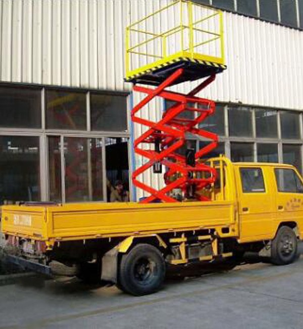 車載剪叉式升降機是集四輪移動與二輪牽引式于一身,采用汽車底盤做平臺底架,利用汽車發(fā)動做動力,既可行駛又可驅(qū)動升降機。車載剪叉式升降機以小型貨車(汽車)或電瓶車為載體,移動靈活迅速,操作簡單,作業(yè)范圍廣。車載剪叉式升降機采用剪式升降結(jié)構(gòu),剪叉結(jié)構(gòu)采用優(yōu)質(zhì)矩形錳鋼管制作,整體強度高,載重量大,升降穩(wěn)定性好,廣泛用于城建、油田、交通、市政、室外廣告等行業(yè)。